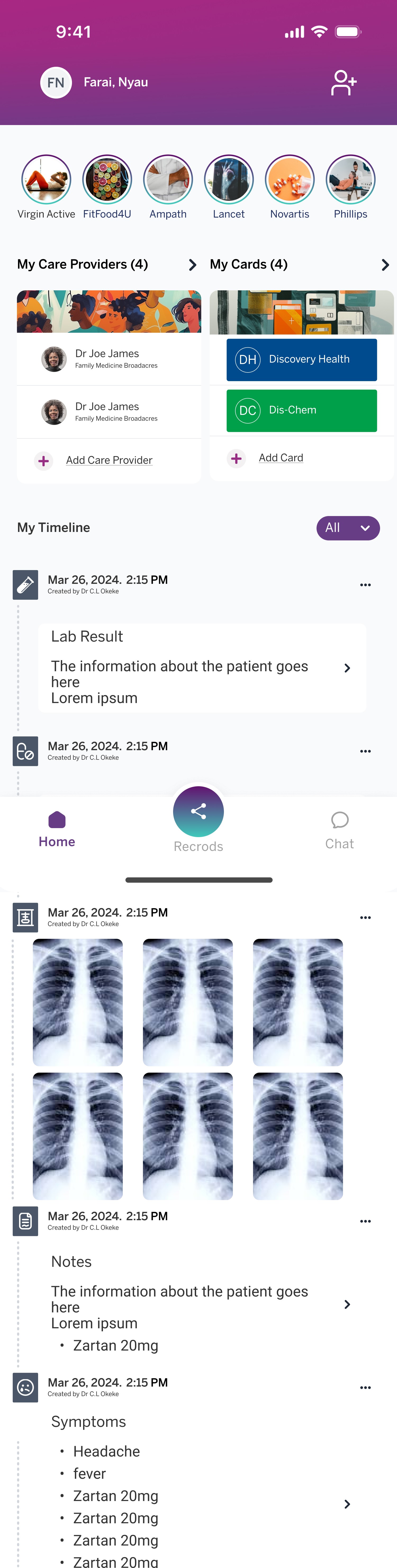 Access your health records, referrals, and care plans, all in one place, and easily share with your family.