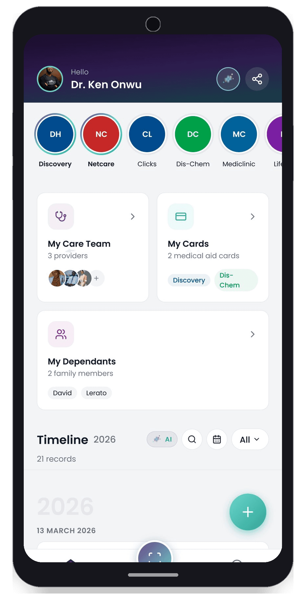 Access your health records, referrals, and care plans, all in one place, and easily share with your family.